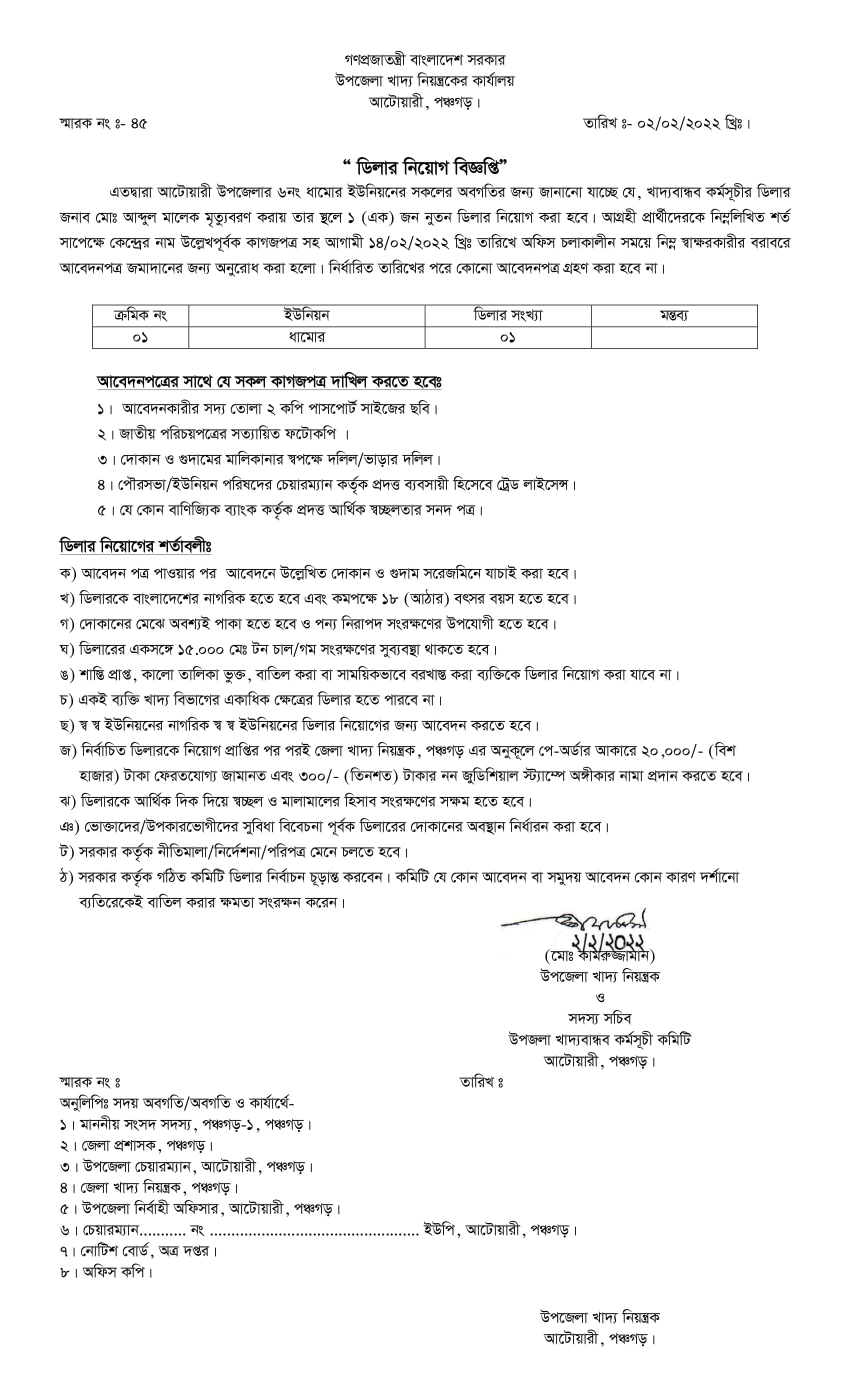 | ৩ | আটোয়ারী উপজেলায় খাদ্যবান্ধব ডিলার নিয়োগ বিজ্ঞপ্তি ১৬/০২/২০২৫ খ্রি | | | ১৬-০২-২০২৫ | দেখুন |